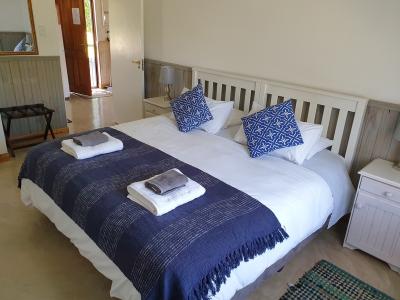 Our breezy self-catering cottage sleeps 4 adults. There are 2 double bedrooms. Main has a king size bed and second room twin beds which can be changed to a king bed on request. The lounge boasts a comfy L-shaped couch and a separate dining area.
